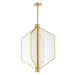 Translucent acrylic panels dotted to guide indirect LED strips integrated into the body of the fixture. The angular forms of the pendants create a strikingly modern display of light that is both airy and voluminous. An additional LED GU10 bulb is recessed at the bottom of the fixture for additional functional light. Available in Satin Brass or Matte Black finishes.