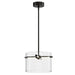 Modern, Clear glass cylinders suspended by streamlined pole structures that brightly illuminate surfaces below with high powered integrated LED. Select from two finishes, Black or Gold, and two sizes of pendants, 9 or 12.5 inch diameters, as well as a coordinating wall sconce.