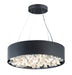 Drums of Black conceal various size Brushed Aluminum tubes which are specially treated to create visual stimulation as the LED light passes through. This exclusive design produces incredible light without glare which adds to the glamor of this unique design.