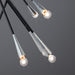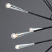 A complex statement yet simple in design. This sculptural light uses different materials and textures to create the focal point. Polished spun metal rods with chromed tips and canopy, braided cable supports