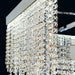 Geometric curtains of gleaming crystal beading cascade from an LED lit polished chrome frame.