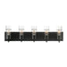 Clear glass cylinders featuring vintage bulbs are perched above slim brackets and held by a slender chic ring. An inviting warm glow radiates from the fixture through the transparent glass, showcasing the beautiful detail of each filament.