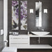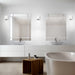 Illuminated acrylic diffusers are vertically seated on a chrome frame. The frosted acrylics provide a softened glow while the downlight offers a more concentrated beam.