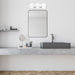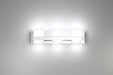 A frosted acrylic prism is nestled in a chrome frame structure exuberating modern excellence. A strong architectural form is accentuated by the strong lines in its design.