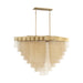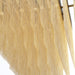 A lustrous collection of delicate, high-gloss metal chains cascade like gleaming streams of water in this transitional piece. Resembling armored chain mail, the polished, plated mesh envelops each integrated LED light to add a soft, shimmering glow.