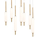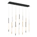 Opal LED capsules suspended by metal rods hang like delicate water reed plants. This contemporary design features the on-trend opal glass finish along with various options for finishes. The oval shapes enhance its softened design for a truly inviting piece.