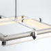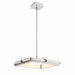 A thick metal band encircles this pronounced industrial design. The squared ring supports integrated LED for an inward glow, while the polished chrome complements the nickel for a strong composition.