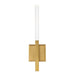 Its crystal rectangular prism and sharp beveled edges create brilliant illumination to the Benicio collection. Solid glass vertical spires cast vivid refractions across wall and ceiling surfaces. The thin simple geometric shape lends itself to luxurious and contemporary environments while providing a dual LED light source.