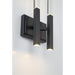 Its crystal rectangular prism and sharp beveled edges create brilliant illumination to the Benicio collection. Solid glass vertical spires cast vivid refractions across wall and ceiling surfaces. The thin simple geometric shape lends itself to luxurious and contemporary environments while providing a dual LED light source.