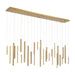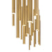 An assortment of tubes suspended at different lengths and thicknesses to create a visually dynamic composition. The aluminum rods house LED lights at one end for collective spot lighting while adding a playful twist to its minimal design.
