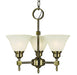 Framburg 2438 AB/WH Three Light Chandelier, Antique Brass w/White Marble Glass Shade