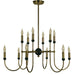 Framburg 4798 AB/MBLACK 12 Light Chandelier, Antique Brass w/Matte Black
