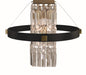 Rectangular and square crystals surround a 5 light cluster to diffuse the light and a ring with square accents are suspended by cable to make it appear to float. Every Framburg lighting fixture is made in the USA.