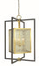 Square cage in brushed brass finish with martel glass diffuses the bulb and is suspended inside a black frame as if is floating.