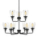 The Belton nine light multi-tier chandelier in midnight black is the perfect way to achieve your desired fashion or functional needs in your home. Influenced by the vintage industrial designs of early 20th Century America, the transitional Belton lighting collection has seeded glass shades and Midnight Black finish, adding a layer of retro design to the warm look.