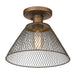 This cool, industrial design works well in a variety of interiors. Multiple finish options create an array of bright, stylish fixtures. Enhance your home's style with the beautiful details of the Carver Collection. Safety-rated for damp locations, these semi-flush fixtures are ready for any room. Place this in a foyer, dining room, hallway, or entry. The mesh shades work best in industrial to farmhouse decors.