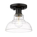 Golden 0305-FM BLK-CLR One Light Flush Mount, Matte Black