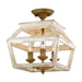 The Haiden Collection features lantern style fixtures in a Burnished Chestnut metal finish. The complex bronze finish is paired with a complementary gray distressed wood frame. The trendy mix of materials makes this semi-flush the perfect cross between cozy farmhouse and clean modern style. This damp-rated semi-flush can be used as an accent in foyers or hung in a bathroom.