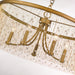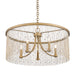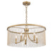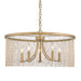 The design of the Marilyn collection is evocative of the glamour and romance of the 1920s. Shimmering gold chains dangle dramatically suspending beads of crystals or pearls. The gold strands create the illusion of full drum shades, shielding slender arms and elegant candelabras. This glamorous design creates a look of timeless elegance that works beautifully in eclectic environments. The Peruvian Gold finish complements a variety of interiors. This 5-light chandelier creates a stylish focal point and is comfortably sized for intimate dining and living areas.