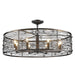 Bijoux is a jewelry-inspired collection of industrial-chic fixtures. Partially exposed bulbs shine coyly through hand-wrapped wire shades, lighting the lustrous faceted crystals. A dark beauty, the collection features a hand-painted multi-layered Brushed Etruscan Bronze finish. Transitional in style, the fixtures are ideal for eclectic and contemporary room decors. This 8-light semi-flush creates a stylish focal point.