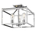 Wesson is a clean contemporary collection that is available in multiple finishes. The industrial look is enhanced by the exposed medium-based bulbs inside the square tubing of the open, geometric cages. Complete the modern, rustic look by installing Edison Bulbs. This flush mount is perfect for hallways and foyers.