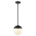 Mid-century modern design with a modern twist, these fashionable orbs are highly customizable. Available in clear or opal glass with plated chrome, pewter or brass or smooth matte black hardware. Caps are available in a number of accent colors to further customize your look. Choose colors and finishes that complement your existing décor or design your entire room around your favorite color combination. This small, rod-hung pendant features a may be hung individually or grouped over a bar.