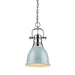 The Duncan collection is contemporary style with an industrial feel. The collection features a variety of simple, traditional silhouettes that are a nod to a bygone era. Transform the look of your room with these classic, vintage-inspired fixtures. A variety of plated and painted metal shade finishes are offered in choice combinations. This small, chain-hung pendant features a may be hung individually or grouped over a bar.