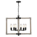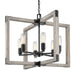 Simple and geometric, Lowell is rustic style in a modern form. Crafted of genuine Pinewood, the lightly distressed solid wood frames are washed in a soft gray for a casual, coastal feel. The dark matte black of the exposed sockets, joints, and hardware lends an industrial influence to the design, providing dramatic contrast to the light tone of the natural wood. This 6-light chandelier creates a stylish focal point and warm ambient lighting perfect for intimate living and dining areas or task lighting.