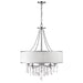 Cultured and classy, the Echelon collection beautifully adorns the well-appointed modern or transitional home. Available in choice shade options to make a confident statement. Accessorizing the collection, diverse geometric crystals and a selection of modern finishes glisten and sparkle, elevating the look of high fashion design. This 5-light chandelier creates a stylish focal point and is comfortably sized for intimate dining and living areas.