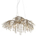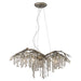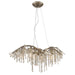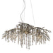 Like dewdrops under a forest canopy, the Autumn Twilight collection displays glistening glass beads that cascade from organic leaves and branches, available in choice finishes. A modern nod to nature, this collection is a natural in contemporary settings. Candelabra bulbs provide an inner source of illumination that causes the light to sparkle and reflect playfully off the countless gleaming surfaces sparking both curiosity and conversation. This 6-light chandelier creates a stylish focal point perfect for intimate living and dining areas.