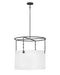 Tribeca's modern drum pendant design thrills with edgy details. A custom Black chain suspends the crisp white drum shade, held in place by the oversized Black metal grommets and circular gridwork frame.