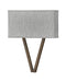 Featuring a clean "V" design, Vector is a sophisticated yet versatile wall sconce fit for all environments, and is fully dimmable and ADA compliant. Vector comes in a flattering Walnut finish in an Off White Linen Heather Gray Linen shade.