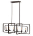 Quentin is constructed of angular forms that create a striking geometric interplay. This stem-hung collection features intersecting rectangles in a bold Buckeye Bronze finish, forming a modern silhouette. Candle sleeves in Heritage Brass add a distinctively vintage feel that is both hip and historical.