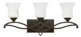 Brooke's updated traditional look features a minimalist forged scroll design in Antique Nickel and Olde Bronze that elegantly complements its etched opal glass.