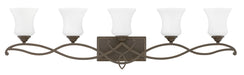 Brooke's updated traditional look features a minimalist forged scroll design in Antique Nickel and Olde Bronze that elegantly complements its etched opal glass.