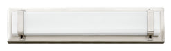Tremont offers a bold silhouette ideal for any transitional décor. The formed linear panel of etched white acrylic creates a soft and seamless appearance while evenly diffusing the eco-efficient LED light source. Offered in Brushed Nickel or Polished Nickel, the shade is secured with sleek metal bands, riveted at each end and framed by a full-length back plate. A raceway back plate allows mounting directly to the wall without the included junction box cover plate, for a more streamlined look.
