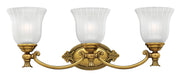 Francoise offers European elegance with decorative cast detailing in a charming Burnished Brass finish. The frosted ribbed glass beautifully contrasts with the metal finish, adding to its classical appeal.