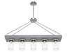 A vintage flair that deserves all the fuss, but isn't fussy. Simply stunning, the Devon Park linear chandelier's rustic wood finishes and ball jar-inspired glass shades create a look perfect for rustic and farmhouse-style spaces. Pair with vintage LED Edison bulbs for an authentic, inviting look. Mix and match with other fixtures from this collection or from our ceiling fan designs.