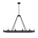 The simple aesthetic of the Saddlewood 10 Light Chandelier lets you customize the look with the bulb style you choose, creating a dining room lighting look that's uniquely yours. The oblong chandelier design makes a statement and provides ample lighting in modern industrial and farmhouse-style dining rooms. Mix and match with other fixtures from this collection or from our ceiling fan designs.