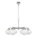 The Saddle Creek chandelier illustrates the contemporary design principle of better, not more. Six classic glass globesâavailable in cased white or clear seeded glassâare offset by the simplicity of the chandelier's metal finish. In keeping with traditional schoolhouse style, a decorative ceiling canopy elevates this fixture to the head of the class. Mix and match with other fixtures from this collection or from our ceiling fan designs.