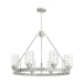 A revised classic design with statement-making elements. The Hartland round chandelier's showcase feature is the clear seeded glass shades. Relish the way the glass catches the light and sparkles in a beautiful effect with this chandelier. The textured glass and strong lines in this round chandelier make for a perfect finishing touch to your space. Mix and match with other fixtures from this collection or from our ceiling fan designs.