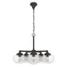 The Saddle Creek chandelier illustrates the contemporary design principle of better, not more. Five classic glass globesâavailable in cased white or clear seeded glassâare offset by the simplicity of the chandelier's metal finish. In keeping with traditional schoolhouse style, a decorative ceiling canopy elevates this fixture to the head of the class. Mix and match with other fixtures from this collection or from our ceiling fan designs.