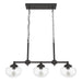 A modern spin on schoolhouse style, the Saddle Creek linear chandelier could perfectly complement your kitchen, dining room, or home office. Brighten up your breakfast nook or keep dinner conversations lit with this contemporary take on a classic design. The choice of metal finish offsets the fixture's trio of globes, available in cased white or clear seeded glass. Mix and match with other fixtures from this collection or from our ceiling fan designs.