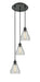 Conesus - 3 Light - 13 inch - Matte Black - Clear Crackle Shade - Cord Hung - Multi Pendant