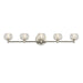The Ella Bath Collection features Dimpled Clear Optic Glass with a classic Polished Nickel finish and LED G9 Bulbs included.