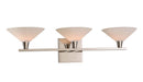 Constructed of Heavy Gauge Steel in a Polished or Satin Nickel finish, the Galvaston Bath Collection offers Inverted Cone Shaped Frosted White Glass and LED bulbs included.