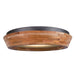 This urban farmhouse inspired design features natural wood inlay and hand painted wrought iron accents. Available in multi-tier hanging, flush and wall pieces.