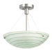 The design of our Aqueous Collection was inspired by the ripples of a stone thrown into the ocean. This collection features a slim stem with metal cables, finished in Kalco's exclusive Satin Nickel, suspending a bowl of beautiful white frosted Costa Glass. The concentric circles etched into the bowl soften this sleek, modern pendant light.