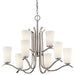 This 9 light, 2 tier chandelier from the Armida(TM) collection is filled with contemporary touches and clean lines. The unique silhouette brings height and dimension to the Brushed Nickel finish. This fixture features LED Light Bulbs which are Energy-Star certified.