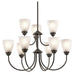 Enjoy the splendor of this Olde Bronze 9 light LED chandelier from the refreshing Jolie Collection. The clean lines are beautifully accented by satin etched glass. Jolie is the perfect transitional style for a variety of homes.